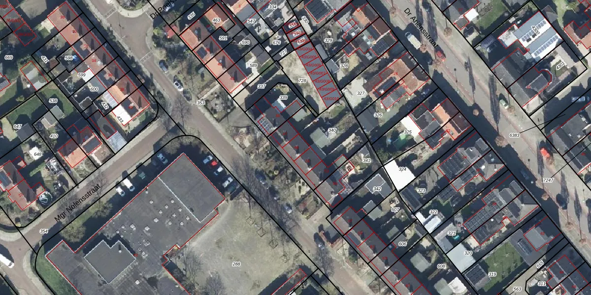 Het perceel waarop Kanunnik de Vriesstraat 49 staat heeft een oppervlakte van 579 m². Dit is een groot perceel. De perceeloppervlakte wordt geregistreerd door het Kadaster. Gedetailleerde informatie over de maten van dit perceel kunt u vinden in het rapport Kadastrale kaart met maatvoering van Kanunnik de Vriesstraat 49.