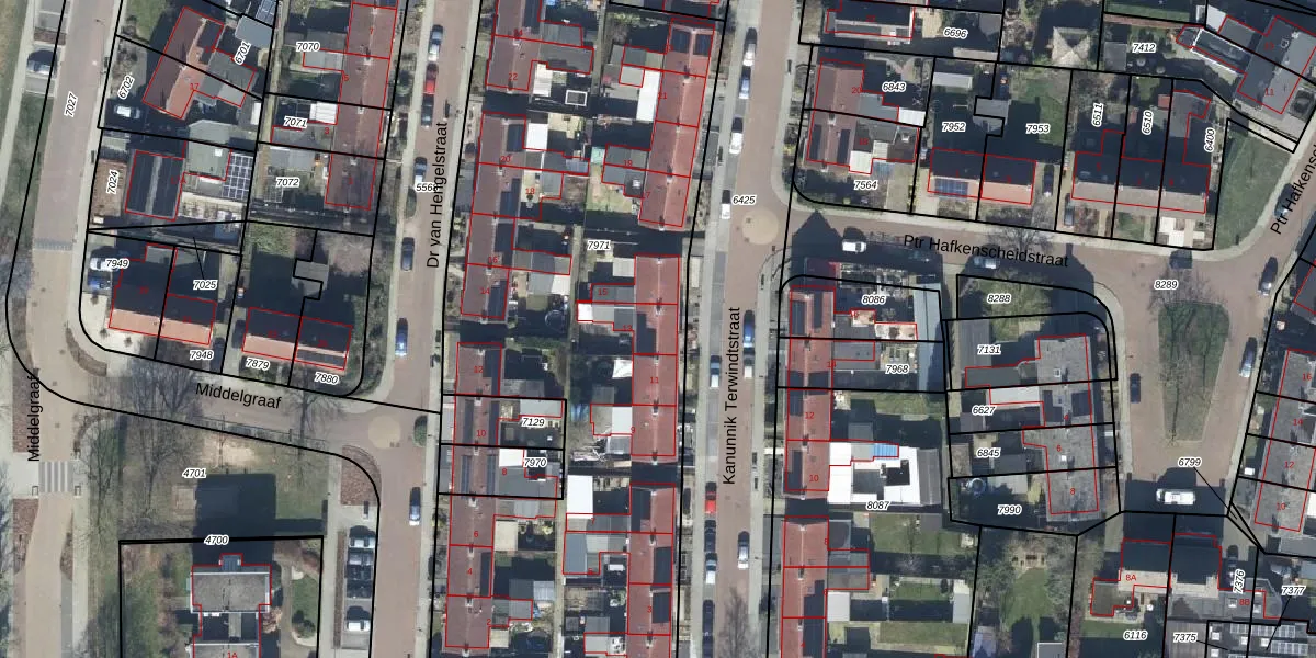 Het perceel waarop Kanunnik Terwindtstraat 13 staat heeft een oppervlakte van 4132 m². Dit is een zeer groot perceel. De perceeloppervlakte wordt geregistreerd door het Kadaster. Gedetailleerde informatie over de maten van dit perceel kunt u vinden in het rapport Kadastrale kaart met maatvoering van Kanunnik Terwindtstraat 13.