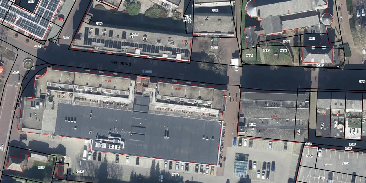 Het perceel waarop Kerkstraat 34 staat heeft een oppervlakte van 8124 m². Dit is een zeer groot perceel. De perceeloppervlakte wordt geregistreerd door het Kadaster. Gedetailleerde informatie over de maten van dit perceel kunt u vinden in het rapport Kadastrale kaart met maatvoering van Kerkstraat 34.