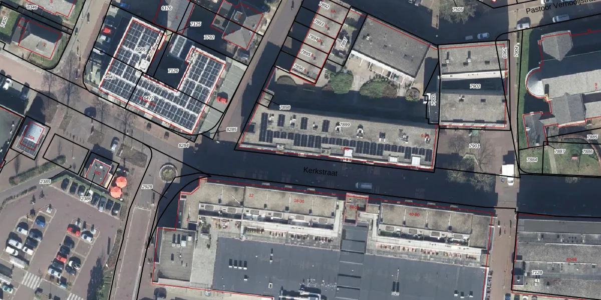 Het perceel waarop Kerkstraat 45 staat heeft een oppervlakte van 2204 m². Dit is een zeer groot perceel. De perceeloppervlakte wordt geregistreerd door het Kadaster. Gedetailleerde informatie over de maten van dit perceel kunt u vinden in het rapport Kadastrale kaart met maatvoering van Kerkstraat 45.