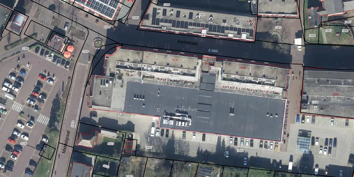 Het perceel waarop Kerkstraat 48 staat heeft een oppervlakte van 8124 m². Dit is een zeer groot perceel. De perceeloppervlakte wordt geregistreerd door het Kadaster. Gedetailleerde informatie over de maten van dit perceel kunt u vinden in het rapport Kadastrale kaart met maatvoering van Kerkstraat 48.
