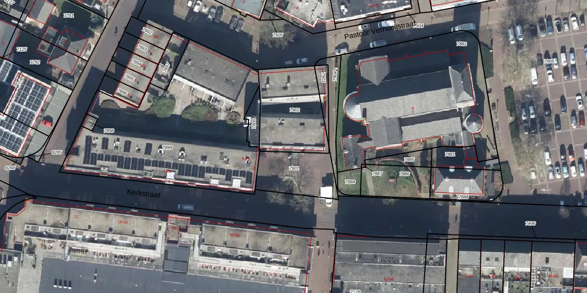 Het perceel waarop Kerkstraat 59 staat heeft een oppervlakte van 617 m². Dit is een groot perceel. De perceeloppervlakte wordt geregistreerd door het Kadaster. Gedetailleerde informatie over de maten van dit perceel kunt u vinden in het rapport Kadastrale kaart met maatvoering van Kerkstraat 59.