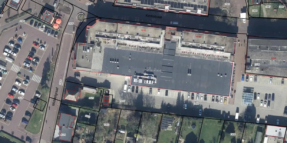 Het perceel waarop Kerkstraat 68 staat heeft een oppervlakte van 8124 m². Dit is een zeer groot perceel. De perceeloppervlakte wordt geregistreerd door het Kadaster. Gedetailleerde informatie over de maten van dit perceel kunt u vinden in het rapport Kadastrale kaart met maatvoering van Kerkstraat 68.