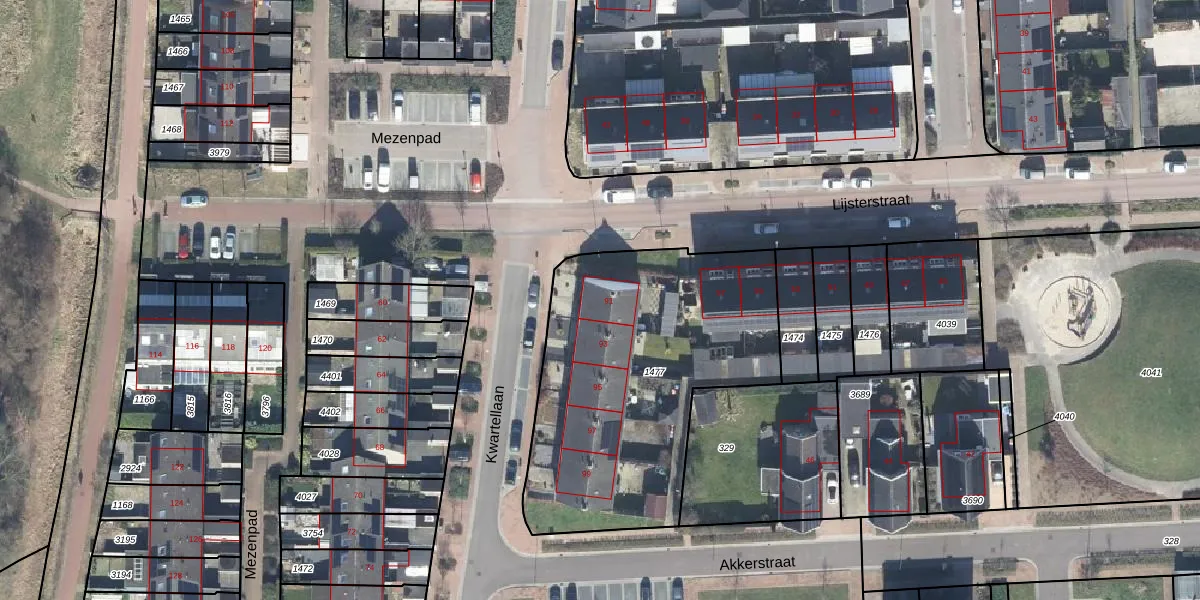 Het perceel waarop Kwartellaan 91 staat heeft een oppervlakte van 1468 m². Dit is een zeer groot perceel. De perceeloppervlakte wordt geregistreerd door het Kadaster. Gedetailleerde informatie over de maten van dit perceel kunt u vinden in het rapport Kadastrale kaart met maatvoering van Kwartellaan 91.