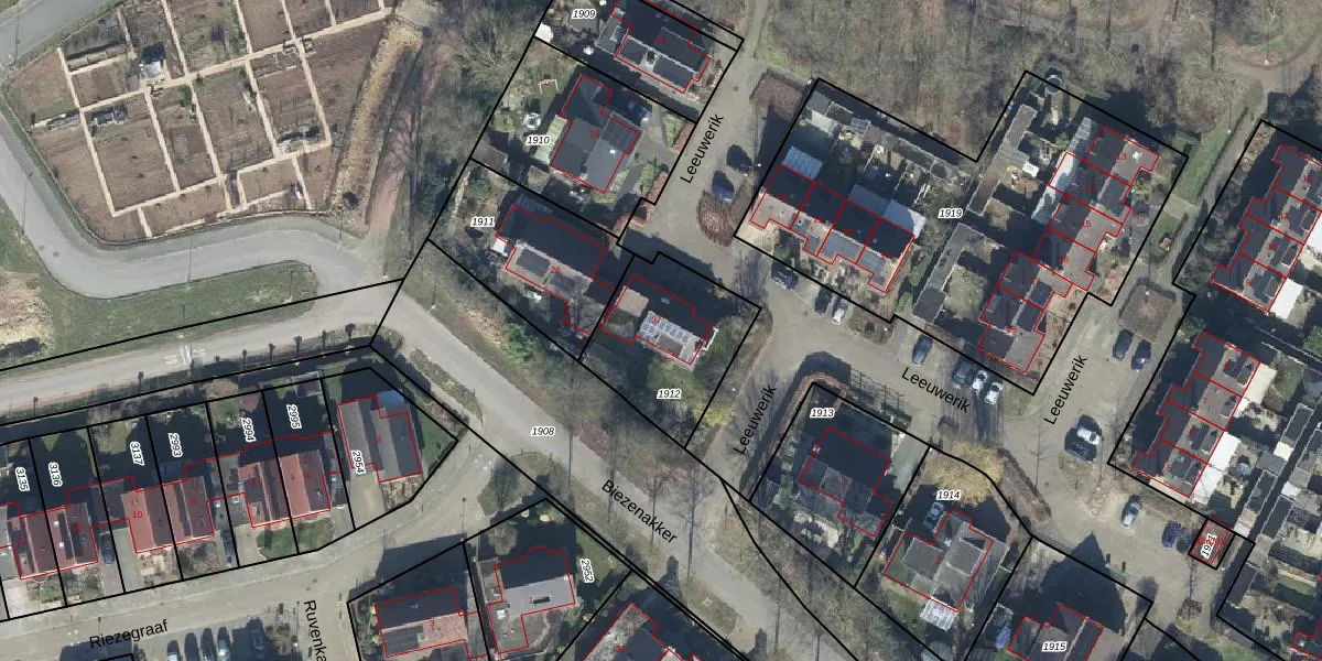 Gebruik de zoekbalk of klik op een perceel voor informatie over de adressen binnen dit perceel.