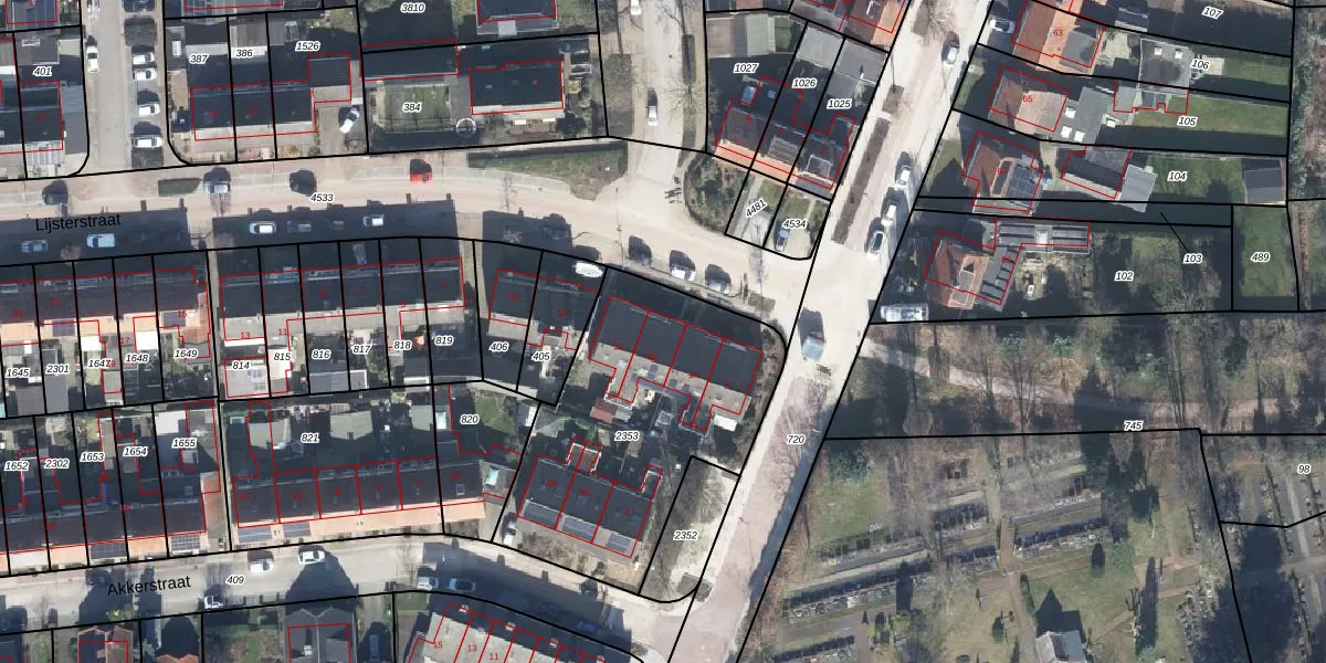 Het perceel waarop Lijsterstraat 1-B staat heeft een oppervlakte van 1195 m². Dit is een zeer groot perceel. De perceeloppervlakte wordt geregistreerd door het Kadaster. Gedetailleerde informatie over de maten van dit perceel kunt u vinden in het rapport Kadastrale kaart met maatvoering van Lijsterstraat 1-B.