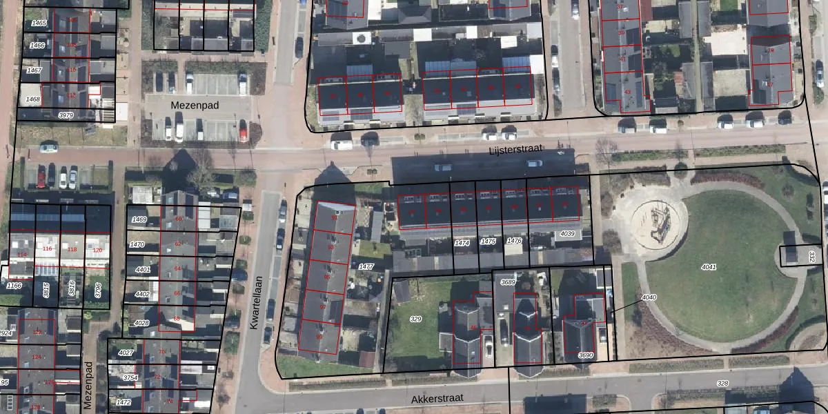 Het perceel waarop Lijsterstraat 57 staat heeft een oppervlakte van 1468 m². Dit is een zeer groot perceel. De perceeloppervlakte wordt geregistreerd door het Kadaster. Gedetailleerde informatie over de maten van dit perceel kunt u vinden in het rapport Kadastrale kaart met maatvoering van Lijsterstraat 57.