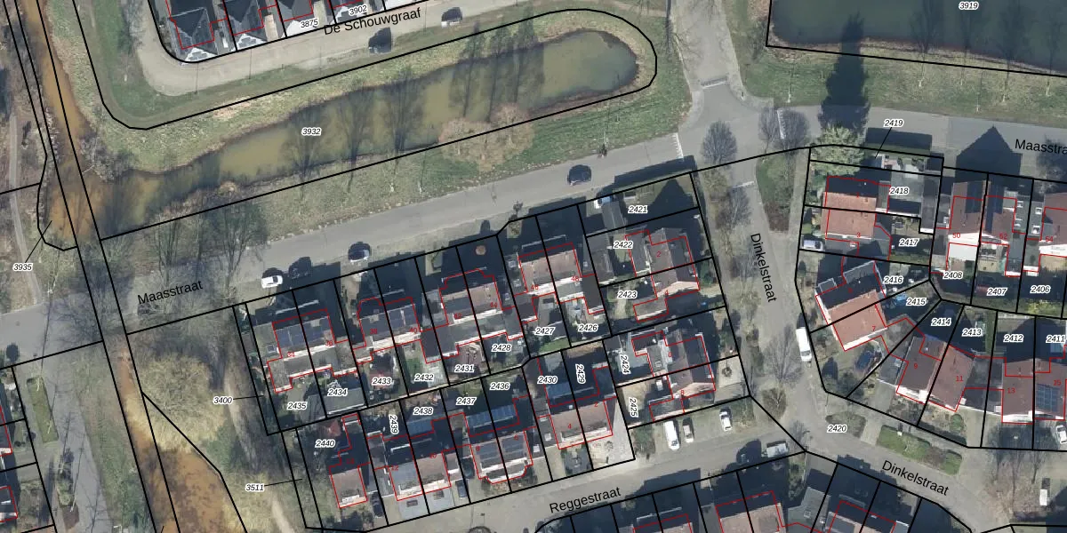 Gebruik de zoekbalk of klik op een perceel voor informatie over de adressen binnen dit perceel.