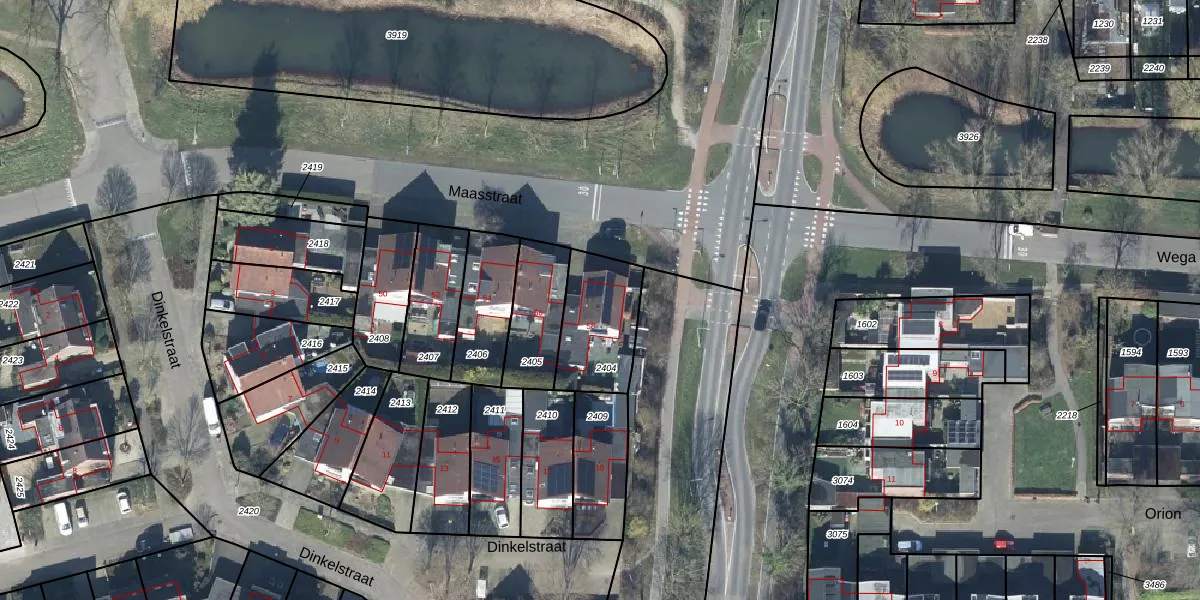 Gebruik de zoekbalk of klik op een perceel voor informatie over de adressen binnen dit perceel.