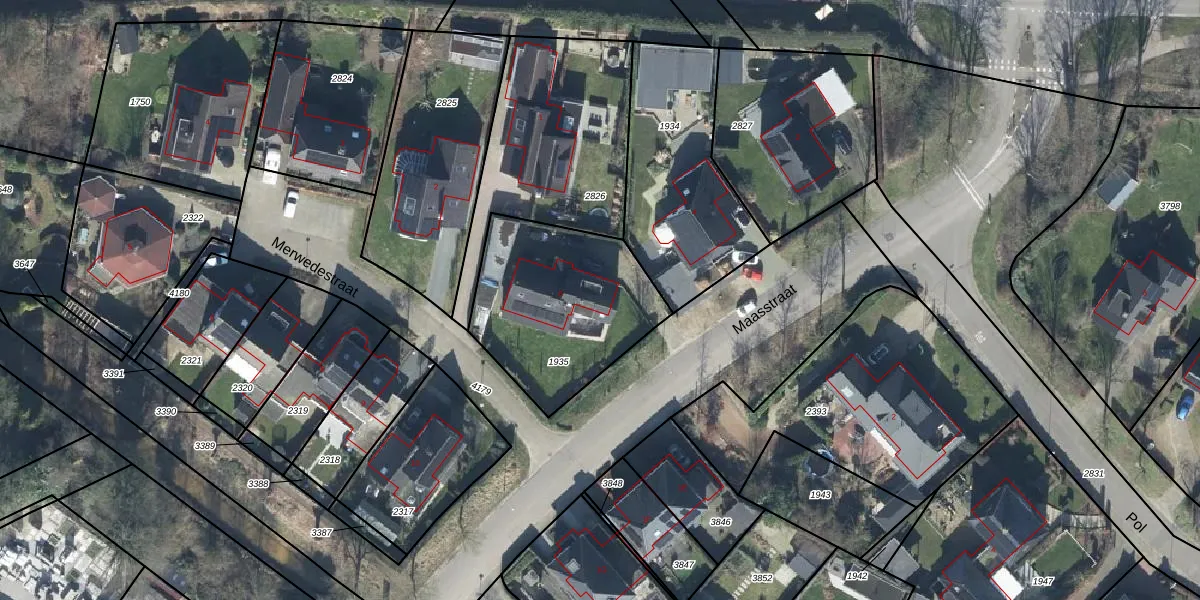 Gebruik de zoekbalk of klik op een perceel voor informatie over de adressen binnen dit perceel.