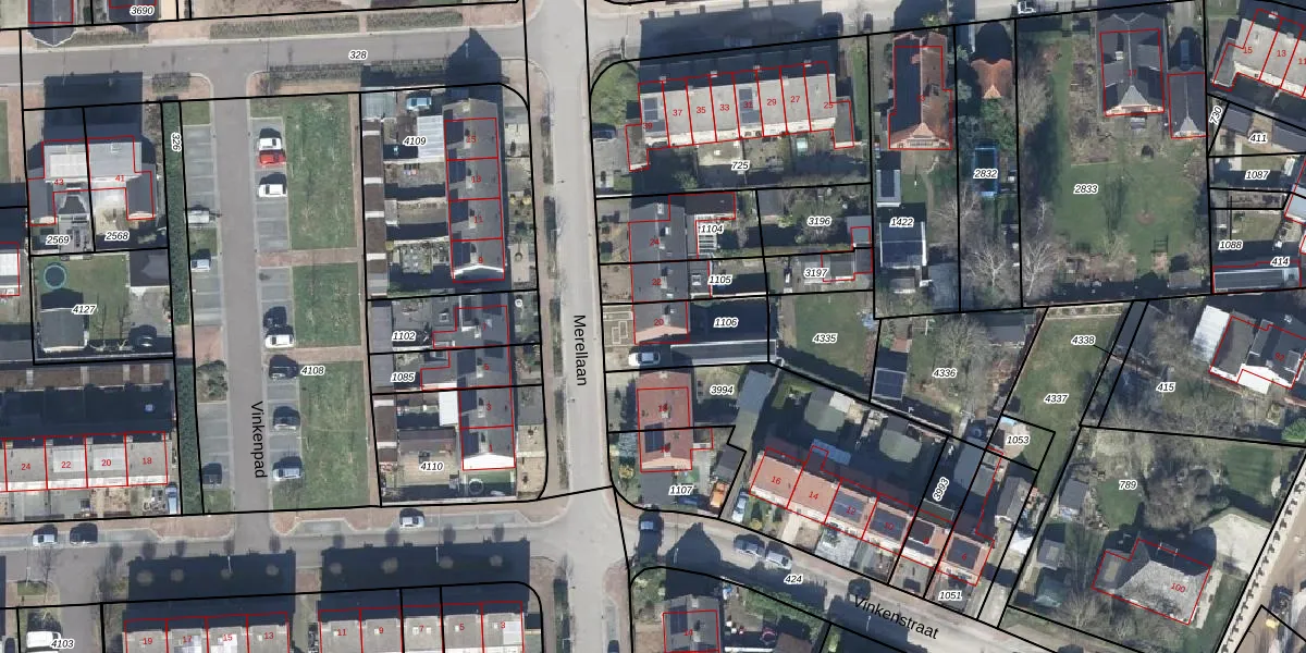 Merellaan 20 is gelegen op kadastraal perceel GDG00L1106. Deze kadastrale aanduiding is uniek en wordt gebruikt door het Kadaster om eigendomsrechten en andere zakelijke rechten vast te leggen. Het perceel maakt onderdeel uit van de kadastrale gemeente Gendringen.
