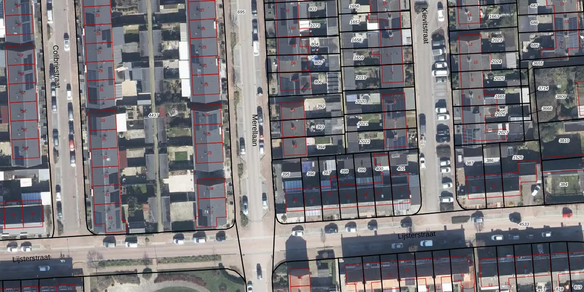 Het perceel waarop Merellaan 48 staat heeft een oppervlakte van 180 m². Dit is een middelgroot perceel. De perceeloppervlakte wordt geregistreerd door het Kadaster. Gedetailleerde informatie over de maten van dit perceel kunt u vinden in het rapport Kadastrale kaart met maatvoering van Merellaan 48.