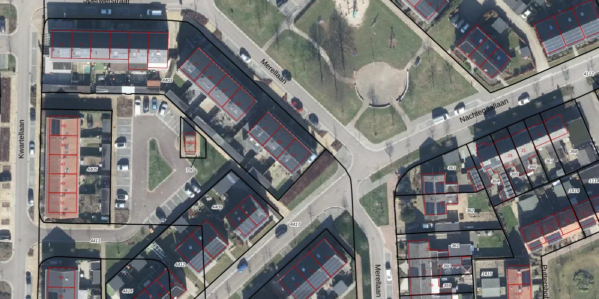 Merellaan 57 is gelegen op kadastraal perceel GDG00L4403. Deze kadastrale aanduiding is uniek en wordt gebruikt door het Kadaster om eigendomsrechten en andere zakelijke rechten vast te leggen. Het perceel maakt onderdeel uit van de kadastrale gemeente Gendringen.