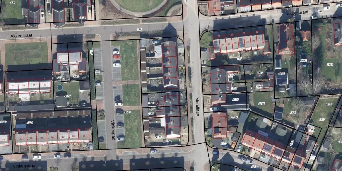 Het perceel waarop Merellaan 9 staat heeft een oppervlakte van 825 m². Dit is een groot perceel. De perceeloppervlakte wordt geregistreerd door het Kadaster. Gedetailleerde informatie over de maten van dit perceel kunt u vinden in het rapport Kadastrale kaart met maatvoering van Merellaan 9.