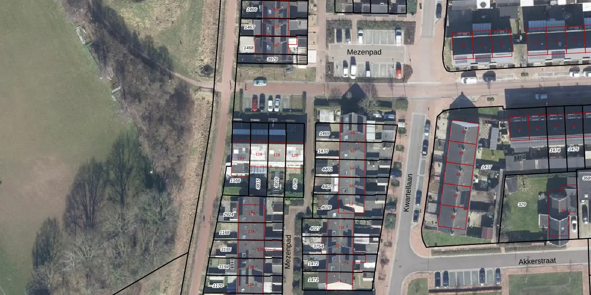 Het perceel waarop Mezenpad 120 staat heeft een oppervlakte van 157 m². Dit is een middelgroot perceel. De perceeloppervlakte wordt geregistreerd door het Kadaster. Gedetailleerde informatie over de maten van dit perceel kunt u vinden in het rapport Kadastrale kaart met maatvoering van Mezenpad 120.