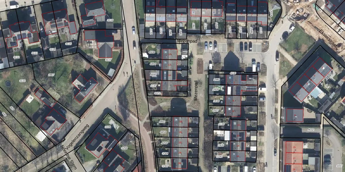 Gebruik de zoekbalk of klik op een perceel voor informatie over de adressen binnen dit perceel.