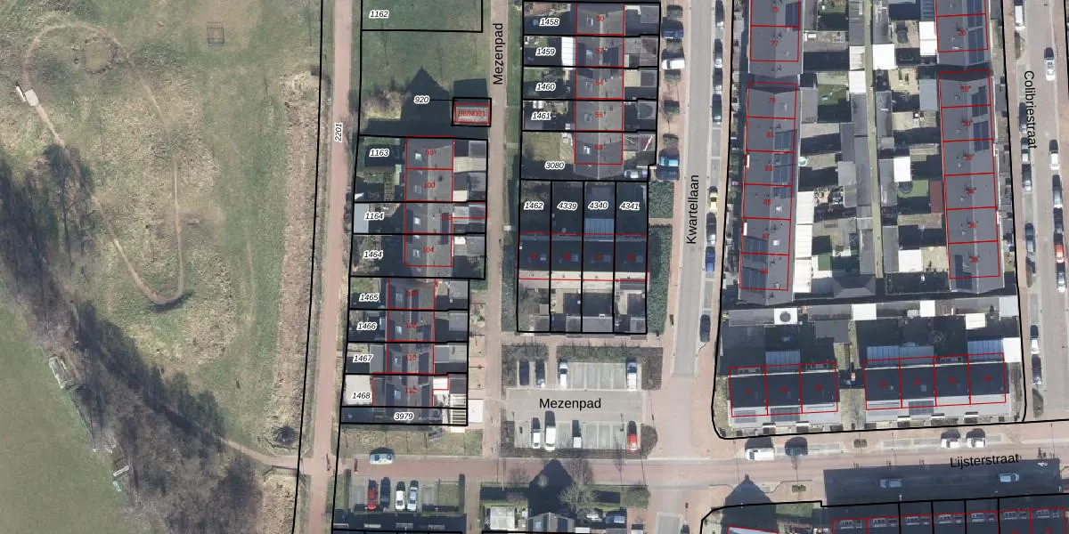 Het perceel waarop Mezenpad 31 staat heeft een oppervlakte van 177 m². Dit is een middelgroot perceel. De perceeloppervlakte wordt geregistreerd door het Kadaster. Gedetailleerde informatie over de maten van dit perceel kunt u vinden in het rapport Kadastrale kaart met maatvoering van Mezenpad 31.
