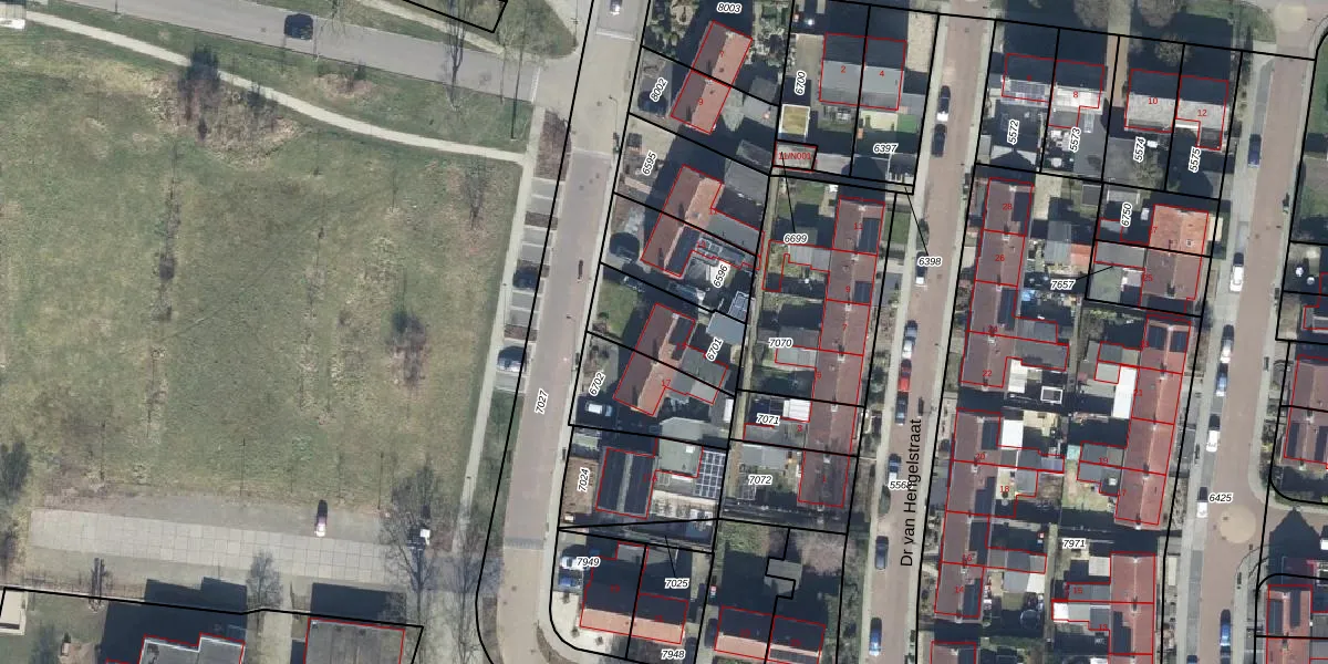 Gebruik de zoekbalk of klik op een perceel voor informatie over de adressen binnen dit perceel.