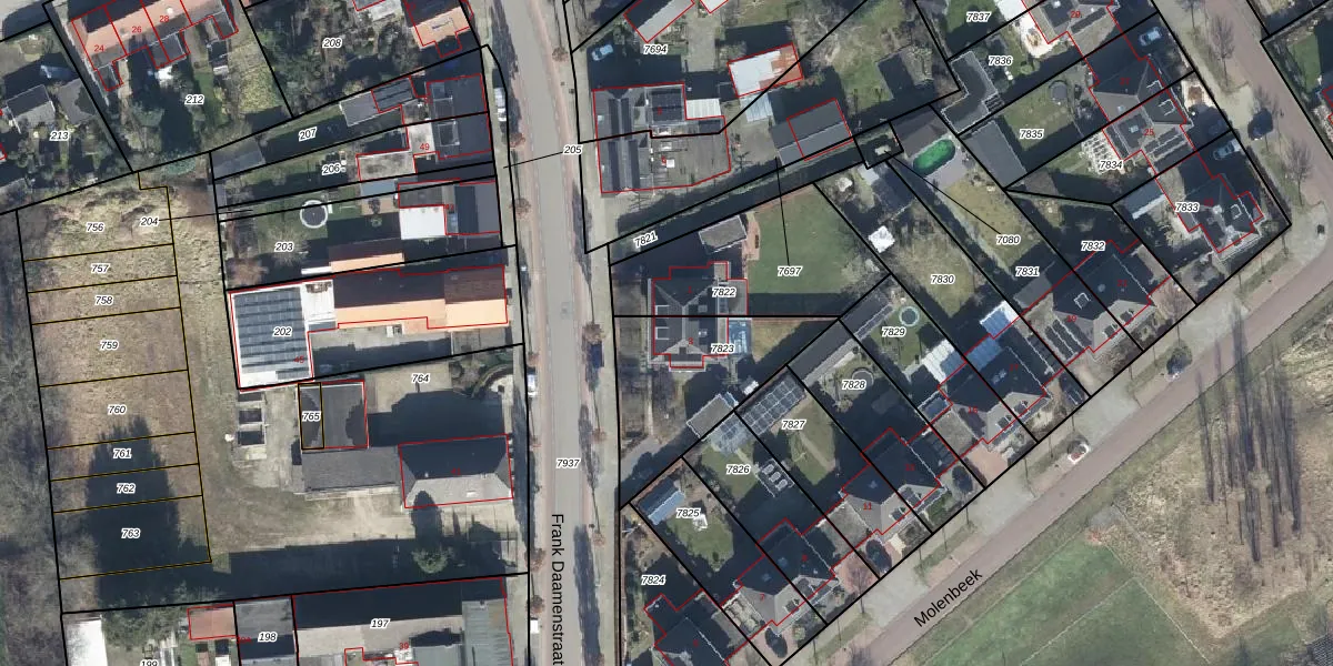 Het perceel waarop Molenbeek 3 staat heeft een oppervlakte van 493 m². Dit is een groot perceel. De perceeloppervlakte wordt geregistreerd door het Kadaster. Gedetailleerde informatie over de maten van dit perceel kunt u vinden in het rapport Kadastrale kaart met maatvoering van Molenbeek 3.