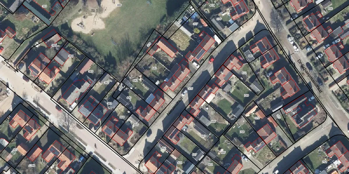 Het perceel waarop Nieuwstraat 5 staat heeft een oppervlakte van 1165 m². Dit is een zeer groot perceel. De perceeloppervlakte wordt geregistreerd door het Kadaster. Gedetailleerde informatie over de maten van dit perceel kunt u vinden in het rapport Kadastrale kaart met maatvoering van Nieuwstraat 5.