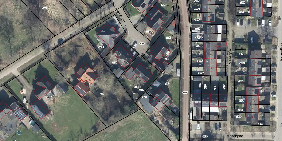 Het perceel waarop Noordse Stern 3 staat heeft een oppervlakte van 530 m². Dit is een groot perceel. De perceeloppervlakte wordt geregistreerd door het Kadaster. Gedetailleerde informatie over de maten van dit perceel kunt u vinden in het rapport Kadastrale kaart met maatvoering van Noordse Stern 3.