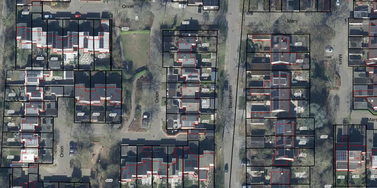 Het perceel waarop Orion 21 staat heeft een oppervlakte van 211 m². Dit is een middelgroot perceel. De perceeloppervlakte wordt geregistreerd door het Kadaster. Gedetailleerde informatie over de maten van dit perceel kunt u vinden in het rapport Kadastrale kaart met maatvoering van Orion 21.