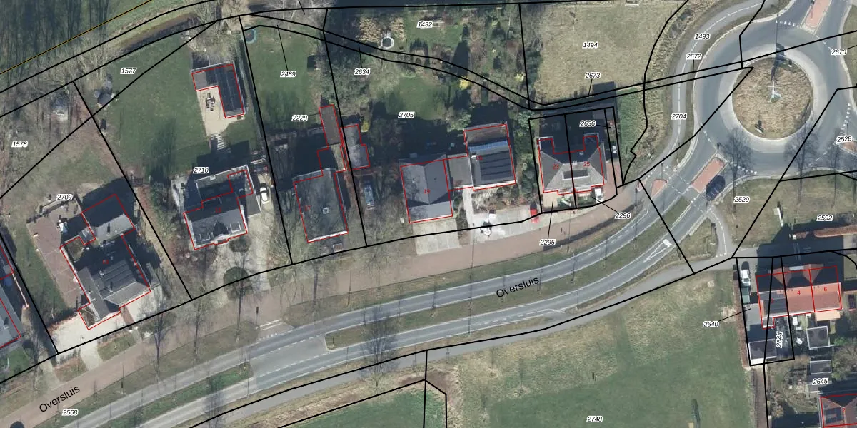 Het perceel waarop Oversluis 19 staat heeft een oppervlakte van 1770 m². Dit is een zeer groot perceel. De perceeloppervlakte wordt geregistreerd door het Kadaster. Gedetailleerde informatie over de maten van dit perceel kunt u vinden in het rapport Kadastrale kaart met maatvoering van Oversluis 19.