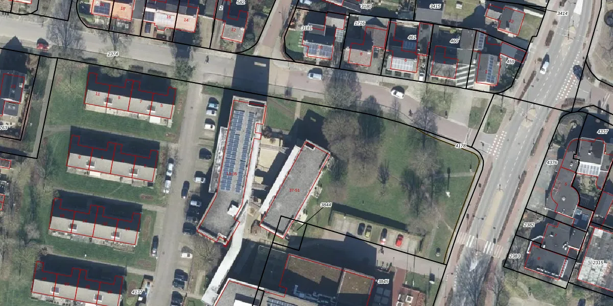 Het perceel waarop Piet Molpad 37 staat heeft een oppervlakte van 1,7 ha. Dit is een zeer groot perceel. De perceeloppervlakte wordt geregistreerd door het Kadaster. Gedetailleerde informatie over de maten van dit perceel kunt u vinden in het rapport Kadastrale kaart met maatvoering van Piet Molpad 37.