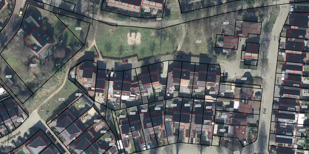 Het perceel waarop Pol 100 staat heeft een oppervlakte van 246 m². Dit is een middelgroot perceel. De perceeloppervlakte wordt geregistreerd door het Kadaster. Gedetailleerde informatie over de maten van dit perceel kunt u vinden in het rapport Kadastrale kaart met maatvoering van Pol 100.