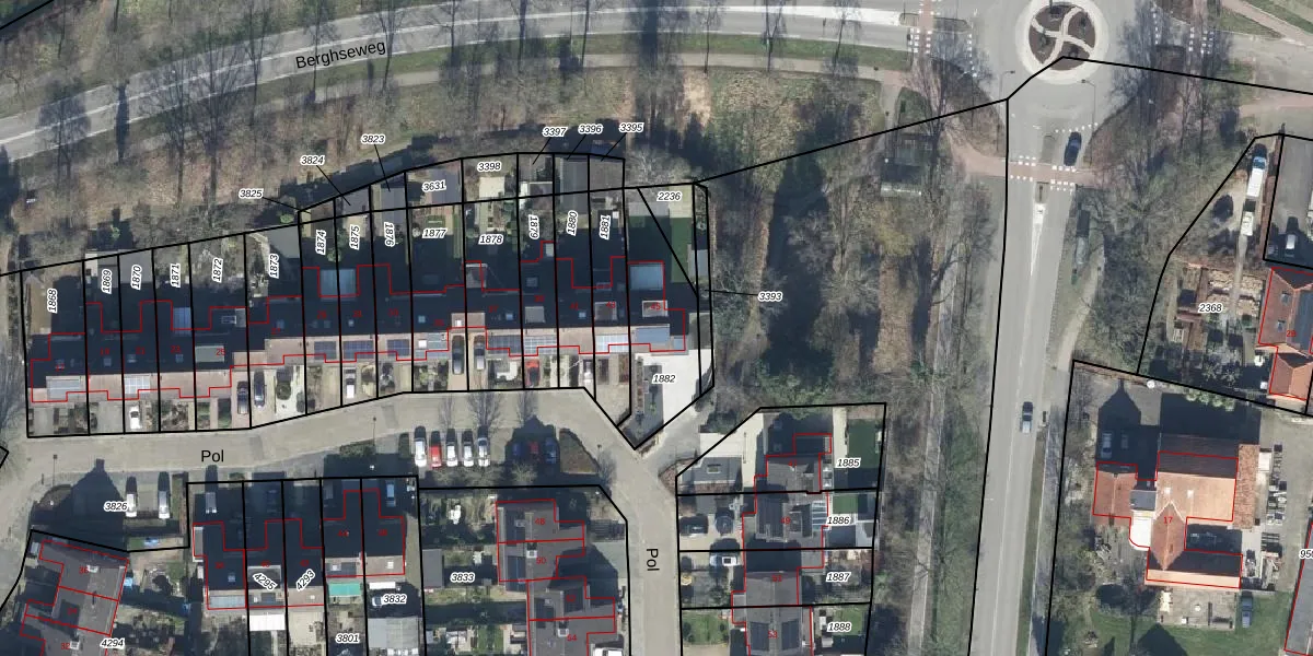 Het perceel waarop Pol 45 staat heeft een oppervlakte van 323 m². Dit is een groot perceel. De perceeloppervlakte wordt geregistreerd door het Kadaster. Gedetailleerde informatie over de maten van dit perceel kunt u vinden in het rapport Kadastrale kaart met maatvoering van Pol 45.