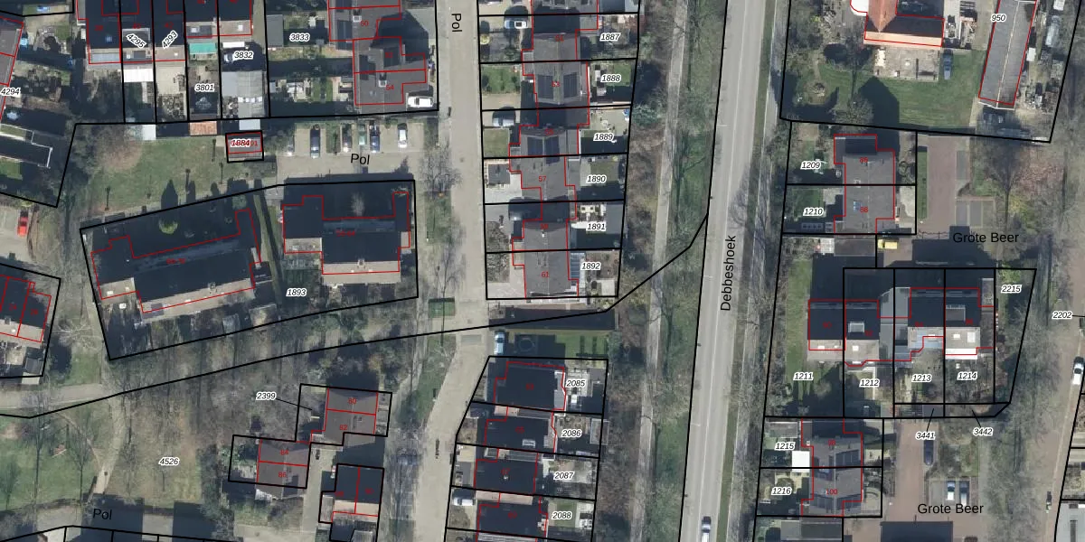 Gebruik de zoekbalk of klik op een perceel voor informatie over de adressen binnen dit perceel.