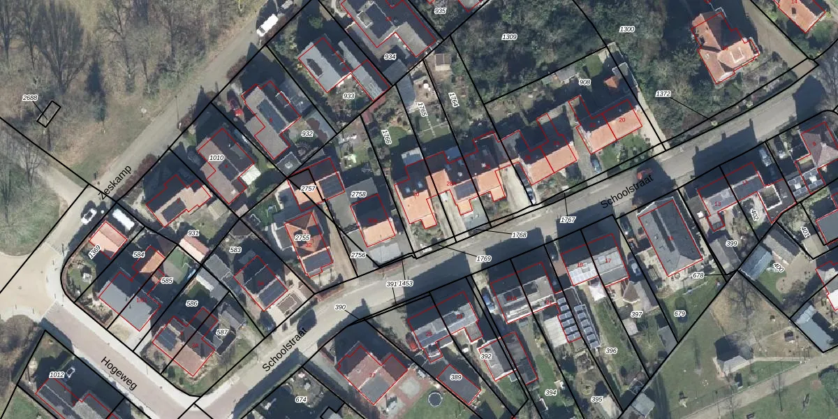 Het perceel waarop Schoolstraat 30 staat heeft een oppervlakte van 390 m². Dit is een groot perceel. De perceeloppervlakte wordt geregistreerd door het Kadaster. Gedetailleerde informatie over de maten van dit perceel kunt u vinden in het rapport Kadastrale kaart met maatvoering van Schoolstraat 30.