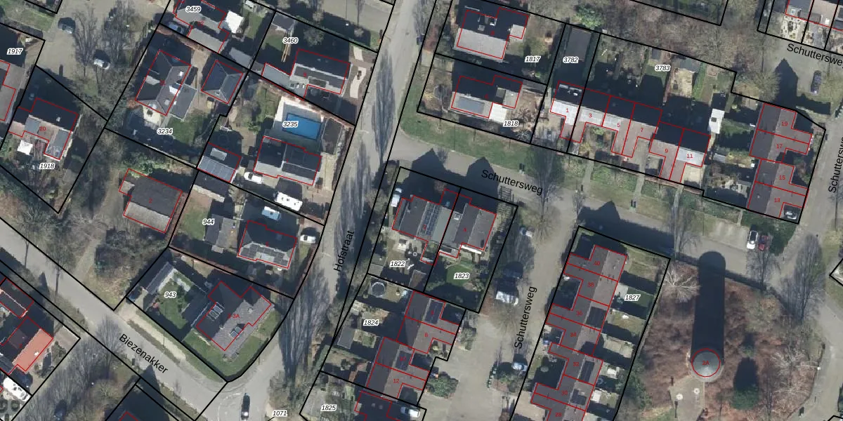 Het perceel waarop Schuttersweg 2 staat heeft een oppervlakte van 390 m². Dit is een groot perceel. De perceeloppervlakte wordt geregistreerd door het Kadaster. Gedetailleerde informatie over de maten van dit perceel kunt u vinden in het rapport Kadastrale kaart met maatvoering van Schuttersweg 2.