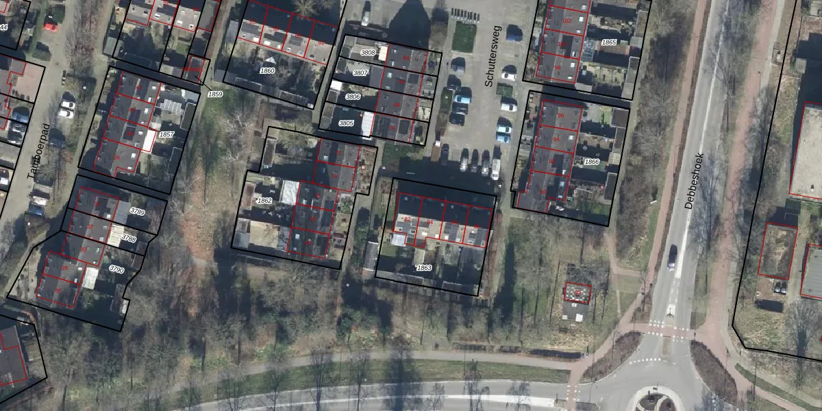 Het perceel waarop Schuttersweg 82 staat heeft een oppervlakte van 626 m². Dit is een groot perceel. De perceeloppervlakte wordt geregistreerd door het Kadaster. Gedetailleerde informatie over de maten van dit perceel kunt u vinden in het rapport Kadastrale kaart met maatvoering van Schuttersweg 82.