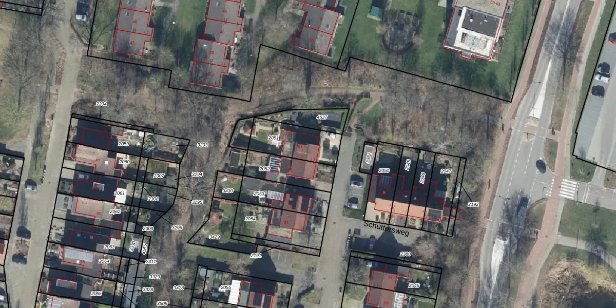 Gebruik de zoekbalk of klik op een perceel voor informatie over de adressen binnen dit perceel.
