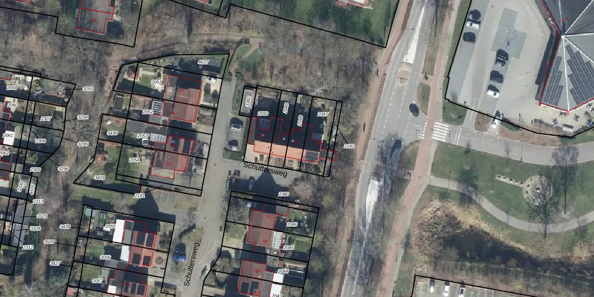 Gebruik de zoekbalk of klik op een perceel voor informatie over de adressen binnen dit perceel.