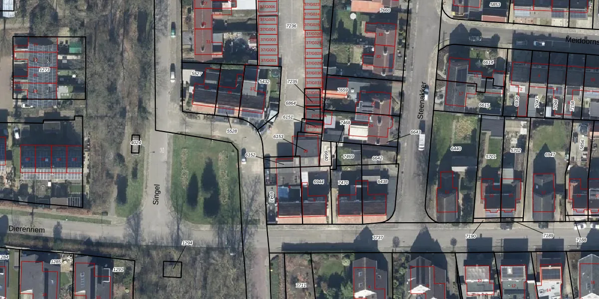 Het perceel waarop Singel 39 staat heeft een oppervlakte van 84 m². Dit is een klein perceel. De perceeloppervlakte wordt geregistreerd door het Kadaster. Gedetailleerde informatie over de maten van dit perceel kunt u vinden in het rapport Kadastrale kaart met maatvoering van Singel 39.