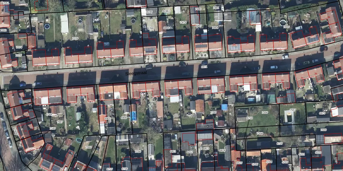 Het perceel waarop Sleegstraat 18 staat heeft een oppervlakte van 3529 m². Dit is een zeer groot perceel. De perceeloppervlakte wordt geregistreerd door het Kadaster. Gedetailleerde informatie over de maten van dit perceel kunt u vinden in het rapport Kadastrale kaart met maatvoering van Sleegstraat 18.