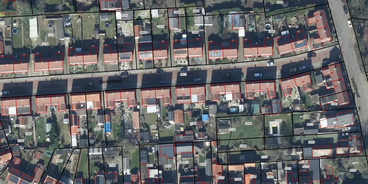 Het perceel waarop Sleegstraat 22 staat heeft een oppervlakte van 3529 m². Dit is een zeer groot perceel. De perceeloppervlakte wordt geregistreerd door het Kadaster. Gedetailleerde informatie over de maten van dit perceel kunt u vinden in het rapport Kadastrale kaart met maatvoering van Sleegstraat 22.