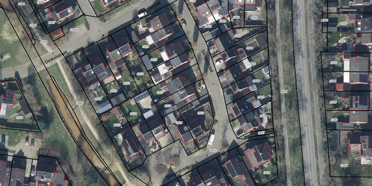 Het perceel waarop Slingestraat 12 staat heeft een oppervlakte van 244 m². Dit is een middelgroot perceel. De perceeloppervlakte wordt geregistreerd door het Kadaster. Gedetailleerde informatie over de maten van dit perceel kunt u vinden in het rapport Kadastrale kaart met maatvoering van Slingestraat 12.