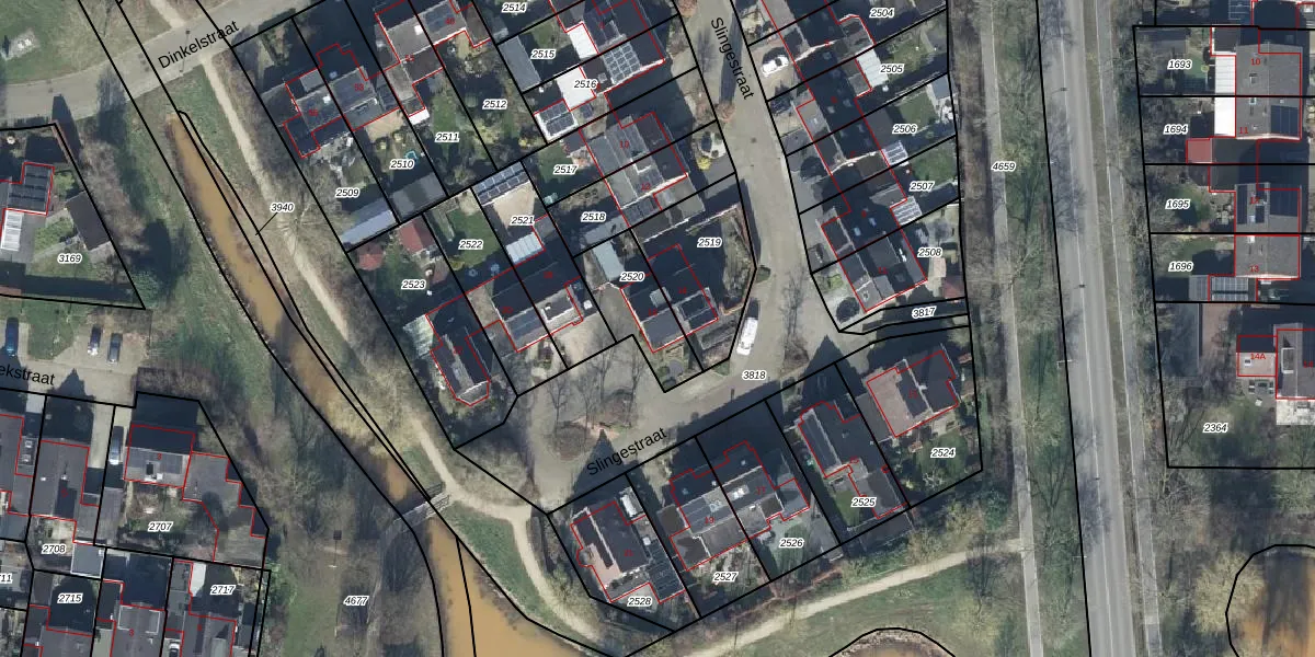 Het perceel waarop Slingestraat 16 staat heeft een oppervlakte van 213 m². Dit is een middelgroot perceel. De perceeloppervlakte wordt geregistreerd door het Kadaster. Gedetailleerde informatie over de maten van dit perceel kunt u vinden in het rapport Kadastrale kaart met maatvoering van Slingestraat 16.
