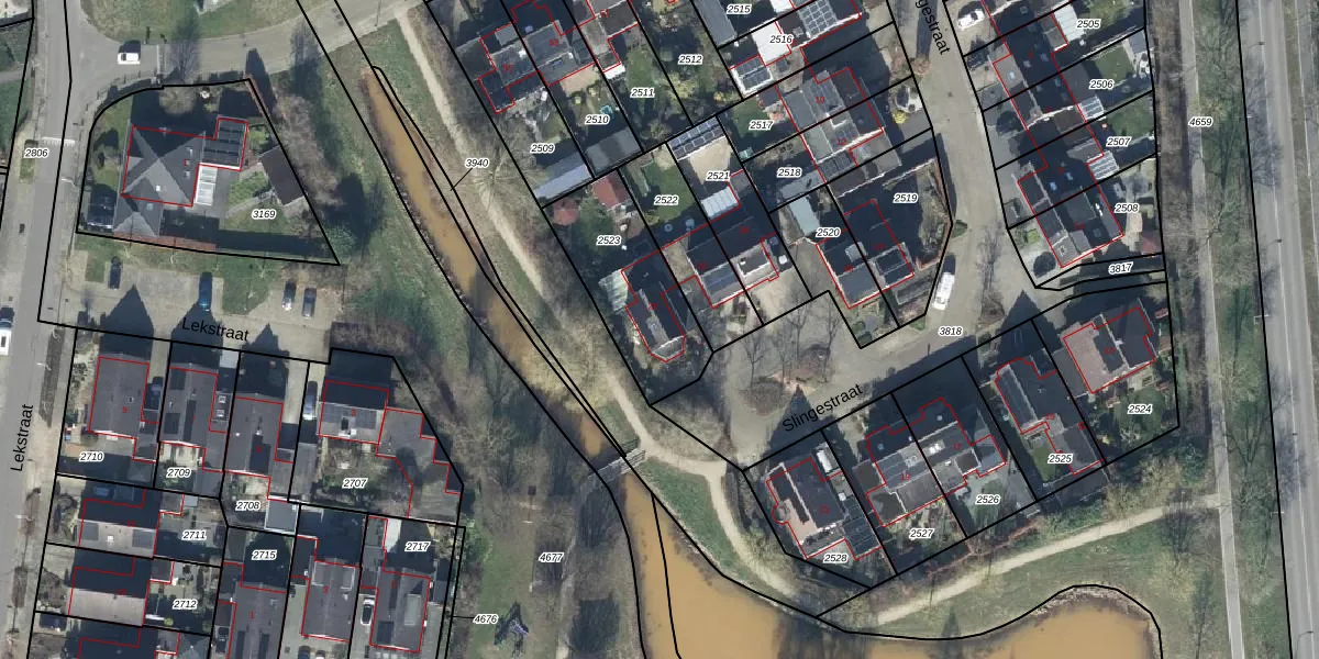 Gebruik de zoekbalk of klik op een perceel voor informatie over de adressen binnen dit perceel.