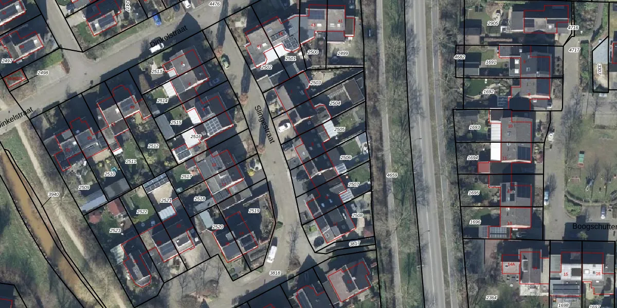 Het perceel waarop Slingestraat 5 staat heeft een oppervlakte van 261 m². Dit is een middelgroot perceel. De perceeloppervlakte wordt geregistreerd door het Kadaster. Gedetailleerde informatie over de maten van dit perceel kunt u vinden in het rapport Kadastrale kaart met maatvoering van Slingestraat 5.