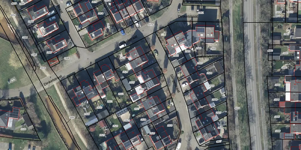 Gebruik de zoekbalk of klik op een perceel voor informatie over de adressen binnen dit perceel.