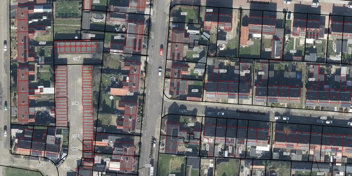Gebruik de zoekbalk of klik op een perceel voor informatie over de adressen binnen dit perceel.
