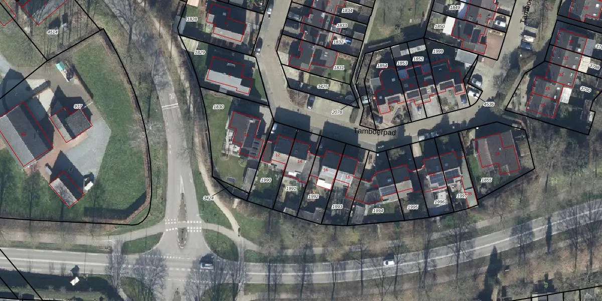 Het perceel waarop Tamboerpad 14 staat heeft een oppervlakte van 235 m². Dit is een middelgroot perceel. De perceeloppervlakte wordt geregistreerd door het Kadaster. Gedetailleerde informatie over de maten van dit perceel kunt u vinden in het rapport Kadastrale kaart met maatvoering van Tamboerpad 14.