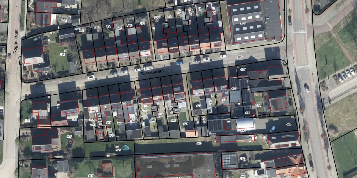 Tarwestraat 18 is gelegen op kadastraal perceel GDG00S174. Deze kadastrale aanduiding is uniek en wordt gebruikt door het Kadaster om eigendomsrechten en andere zakelijke rechten vast te leggen. Het perceel maakt onderdeel uit van de kadastrale gemeente Gendringen.