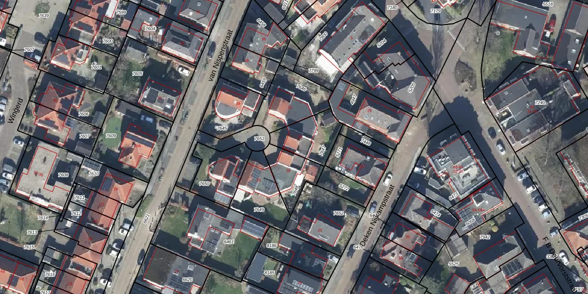 van Nispenstraat 30 is gelegen op kadastraal perceel GDG00T7647. Deze kadastrale aanduiding is uniek en wordt gebruikt door het Kadaster om eigendomsrechten en andere zakelijke rechten vast te leggen. Het perceel maakt onderdeel uit van de kadastrale gemeente Gendringen.