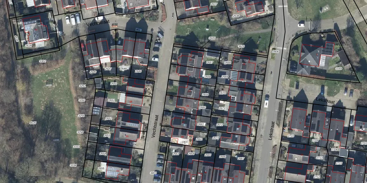 Gebruik de zoekbalk of klik op een perceel voor informatie over de adressen binnen dit perceel.