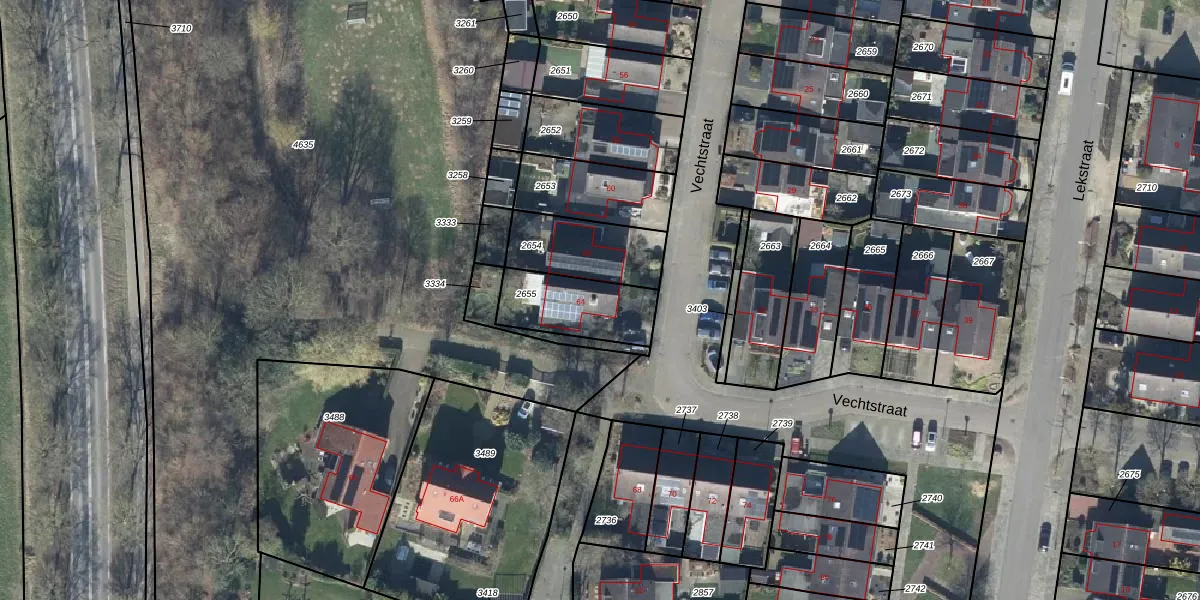 Vechtstraat 64 is gelegen op kadastraal perceel GDG00L2655. Deze kadastrale aanduiding is uniek en wordt gebruikt door het Kadaster om eigendomsrechten en andere zakelijke rechten vast te leggen. Het perceel maakt onderdeel uit van de kadastrale gemeente Gendringen.